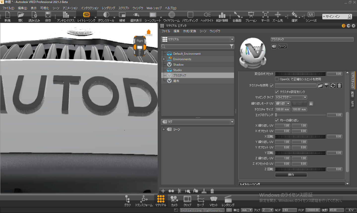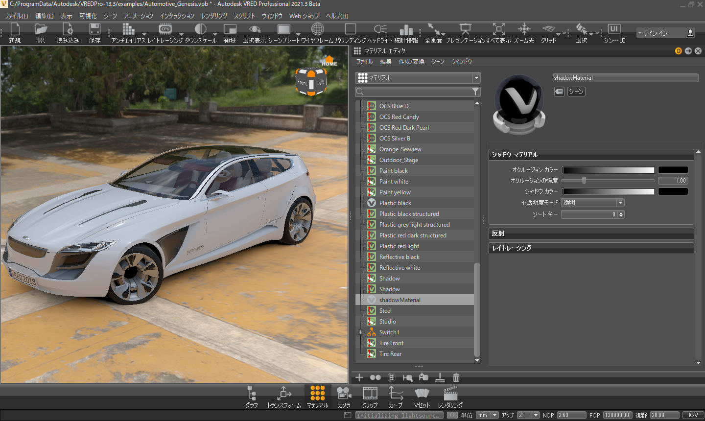 AXF、Substance、シャドウ プレーン、デカール、白熱光マテリアル、アセットなどの操作については、「ワークフロー」の「 マテリアル 」のセクションを参照してください。