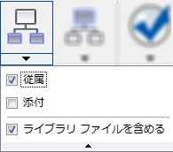 子を含める | 指定した子ファイルをチェックアウト対象に含めるか、子ファイルを無視するかを切り替えます。 指定した子ファイルのタイプを現在のファイルのリストに追加するには、[子を含める]ボタンをクリックします。 [子を含める]機能をオンにしたときに含まれる子のタイプを変更するには、[子を含める]ボタンの下にあるドロップダウン矢印をクリックします。 もう一度クリックすると、[子を含める]機能はオフになります。[含める]に関する設定はすべて無視されます。 |