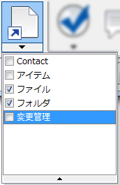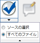 Check | [取得]ダイアログに一覧表示されているすべてのオブジェクト、または[取得]ダイアログを起動する前に選択した元のオブジェクトのみが自動的に選択されます。[子を含める]、[親を含める]、[リンクを含める]のいずれかのボタンが有効になっている場合は、この機能を使用することで、チェックアウト対象にするオブジェクトを手際よく選択することができます。 選択の設定を変更するには、[チェック]ボタンの下にあるドロップダウン矢印をクリックします。