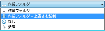 [作業フォルダ]ドロップダウン メニュー | ダウンロードしたオブジェクトのローカル コピーを保存するには、既定の作業フォルダを使用するか、別のフォルダを選択するかを指定します。また、作業フォルダを選択しないことも可能です。[作業フォルダ - 上書きを強制]オプションを選択した場合、他のオプションを選択するまで選択されたままになります。 注: 詳細については、「作業フォルダを管理する」を参照してください。 |