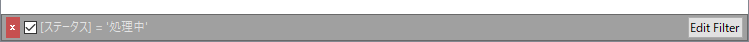 フィルタ ツールバーの[フィルタを編集]ボタンをクリックします。[フィルタを編集]ダイアログ ボックスが表示されます。このダイアログで設定を変更できます。