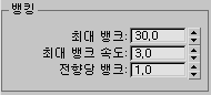 대리자의 기울이는 동작 즉, 이동 중 방향을 변경하면서 앞뒤 축을 중심으로 기울이는 방법에 영향을 주는 매개변수입니다. 뱅킹은 일반적으로 공중에서 또는 물에서 이동하는 오브젝트에 적용되지만 바퀴가 하나 또는 두 개인 운송 수단처럼 지면에 기반을 둔 오브젝트에 적용될 수도 있습니다.