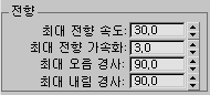 - 대리자가 기울일 수 있는 프레임당 최대 각도를 지정합니다. 기본값은 3.0입니다.