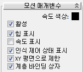 주의: Biped가 있는 대리자를 사용하는 경우 Biped가 모션 흐름 클립 및 동작에서 모든 속도 및 방향 전환 정보를 얻게 되므로 Biped 그룹의 설정만 시뮬레이션에 영향을 줍니다.