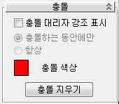 • 충돌하는 동안에만충돌하는 대리자가 실제로 충돌하는 프레임에서만 강조 표시됩니다.