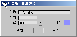모션 클립 매개변수 대화상자의 컨트롤을 사용하여 클립 이름, 프레임 범위 및 컬러를 입력합니다. character studio가 상태 패널에서 정의한 상태에 의해 트리거할 클립을 결정합니다.