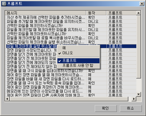 각 메시지에 대해 작업을 선택하고 마우스 오른쪽 버튼 클릭 메뉴를 사용하여 프롬프트를 토글할 수 있습니다. 프롬프트를 끄면 메뉴의 맨 위 부분에 설정된 옵션이 자동으로 발생됩니다.
