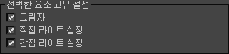 조명 맵에 대해 그림자, 직접 라이트 또는 간접 라이트를 렌더링하지 않도록 선택할 수 있습니다.
