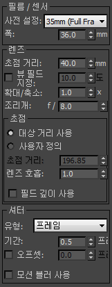 카메라의 기본 물리적 속성을 설정합니다.