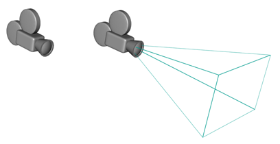 카메라 뷰 필드 원뿔의 윤곽이 밝은 파란색으로 표시됩니다.
