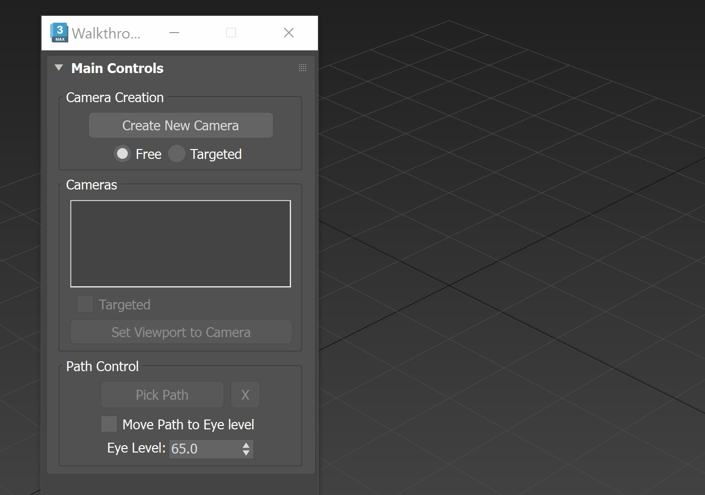 주 제어 롤아웃에서 새 카메라 만들기 버튼을 클릭합니다.