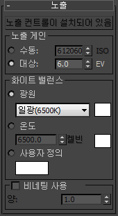 기본적으로 이 롤아웃의 설정은 실제 카메라 노출 컨트롤에 대한 전역 설정을 재정의합니다.