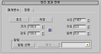 - 렌즈 효과 매개변수 롤아웃 오른쪽의 리스트에서 효과를 선택합니다.
