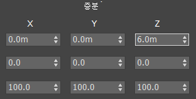 18. 배열 변환 표준 좌표 그룹 증분 열에서 이동 행으로 이동하고 Z축 스피너를 찾아 6.0을 입력합니다.