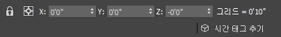 4. 상태 표시줄에서 X 및 Y 좌표(필요한 경우 Z 좌표도 포함)에 대한 스피너 화살표를 마우스 오른쪽 버튼으로 클릭하여 각 필드를 0' 0.0"로 설정합니다.