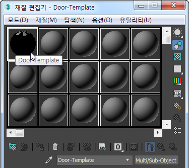 문 재질이 컴팩트 재질 편집기의 첫 번째 샘플 슬롯에 나타납니다.