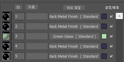 다중/하위 오브젝트 기본 매개변수 롤아웃에서 각 재질을 클릭하여 액세스할 수 있습니다.