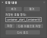 컨테이너 정의 파일이라는 제목의 파일 대화상자가 장면 파일 이름 및 컨테이너 이름을 기반으로 하는 기본 파일 이름 container_start_Container001과 함께 열립니다. 파일을 저장하면 파일 이름 확장자 .maxc가 추가됩니다.
