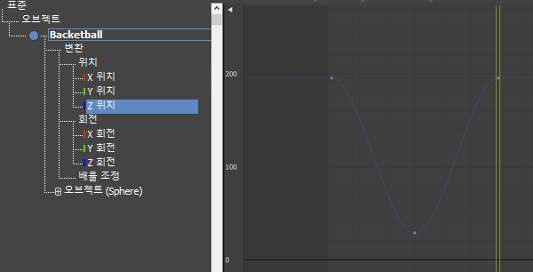 제어기 창(왼쪽의 트랙 및 오브젝트 리스트)에서 Z 위치 트랙을 클릭하여 해당 트랙의 곡선만 표시합니다.