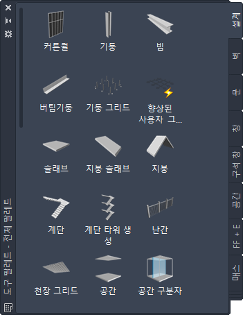 CAD 관리자 또는 다른 사용자가 작성한 사용자 팔레트는 프로젝트나 사무용 표준에 맞게 사용자화된 난간 스타일 및 특성을 가진 난간 도구를 포함할 수도 있습니다.