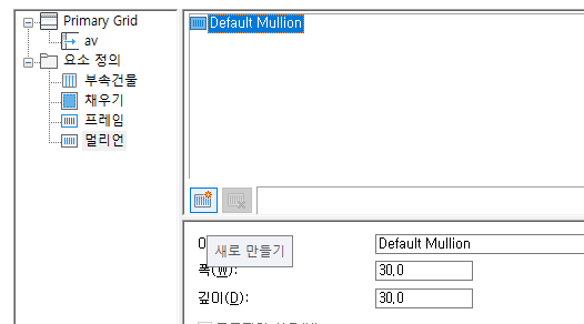 다음 절차에 따라 폭 및 깊이를 지정하여 멀리언을 정의하십시오.