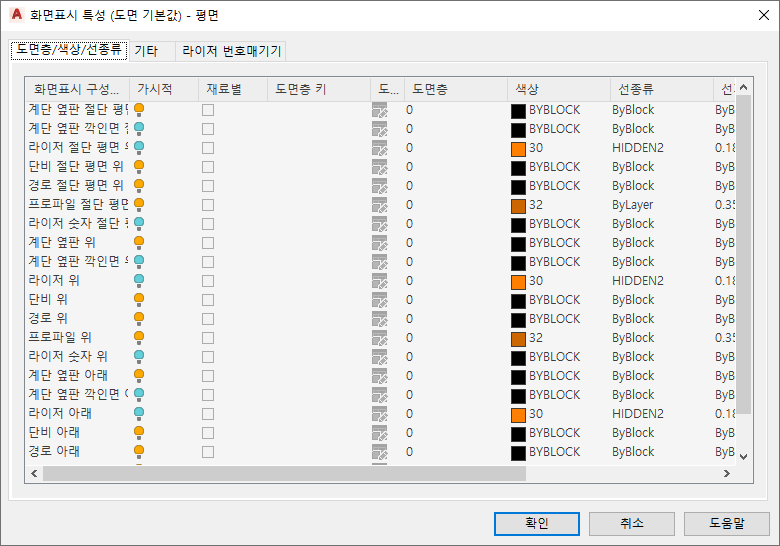 화면표시 구성 재지정 없이 절단 평면 입면 지정