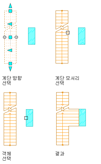 객체(또는 폴리선)가 계단이 완전히 투영될 수 있을 정도로 충분히 확장되지 않으면 계단 길이는 원래 폭으로 확장됩니다.