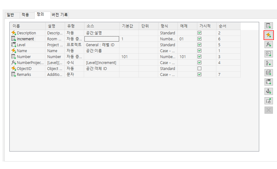 창 일람표에서 생성된 자동 특성을 변경하려면 다음을 수행합니다.