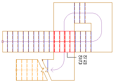 겹치는 단면을 올바르게 보려면, 다음 과정에 따라 겹치는 계단을 작성하고 화면표시 특성을 설정하십시오. 예를 들어, 빨간색으로 그린 중첩 단면 위에 계단의 모든 구성요소를 표시할 것입니다.