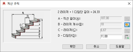 다음 절차에 따라 계단 계산과 관련된 다양한 치수를 조정하십시오.