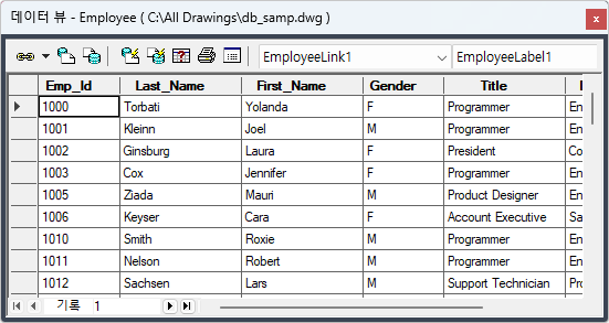 현재 도면에서 그래픽 객체를 선택하면 링크된 레코드가 데이터 뷰 윈도우에 자동으로 표시됩니다.