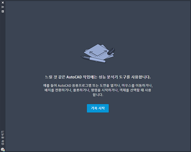 AutoCAD에서 느리거나 응답하지 않는 것처럼 보이는 작업을 진단할 수 있는 성능 분석기 팔레트를 엽니다.