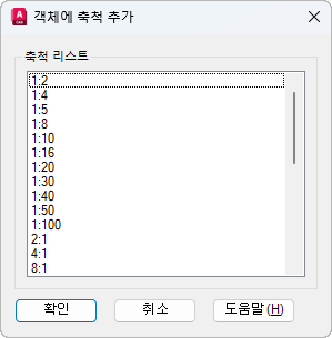 선택한 주석 객체에 추가될 수 있는 축척 리스트를 표시합니다.