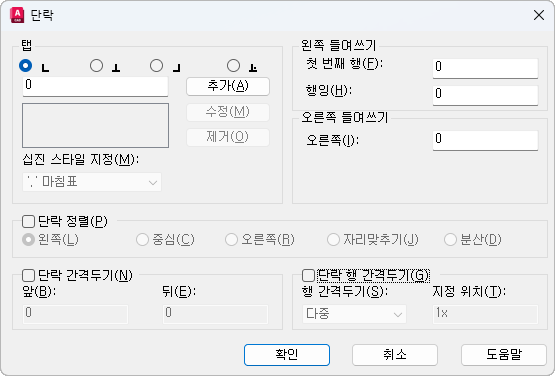 첫 번째 행의 들여쓰기 값 또는 선택한 단락이나 현재 단락의 들여쓰기를 설정합니다.
