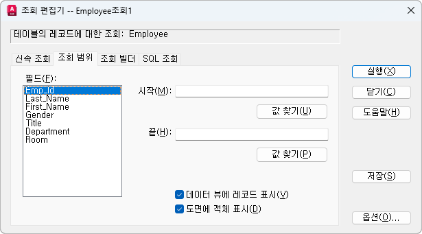 데이터 뷰 및 조회 옵션 대화상자를 엽니다.