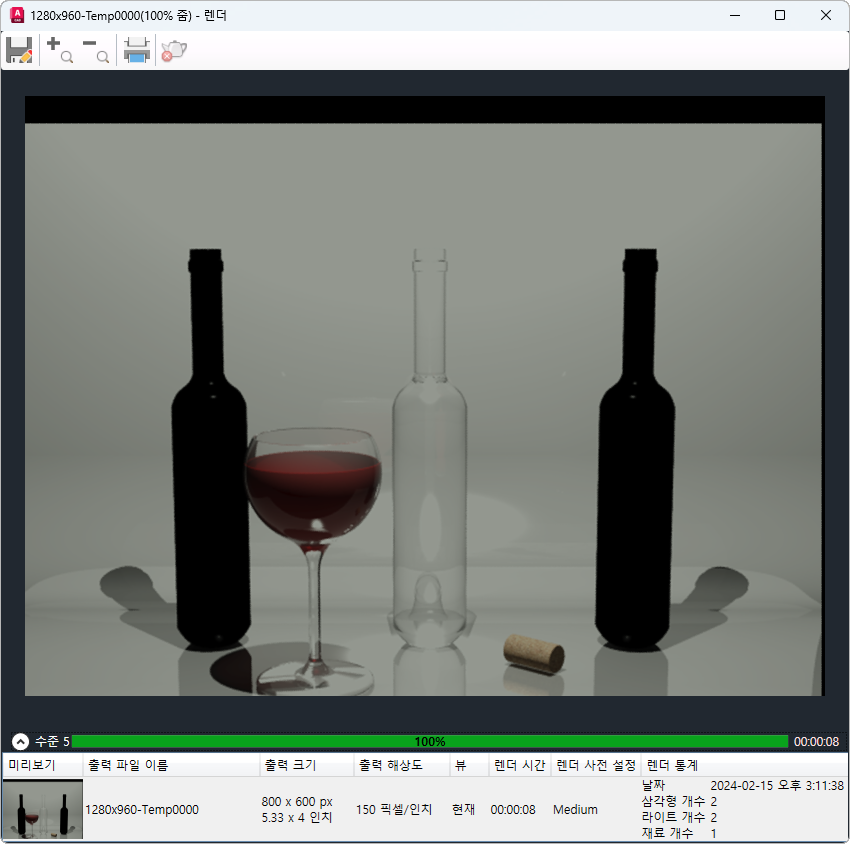 도면의 렌더링은 항상 해당 렌더 윈도우에 나타납니다.