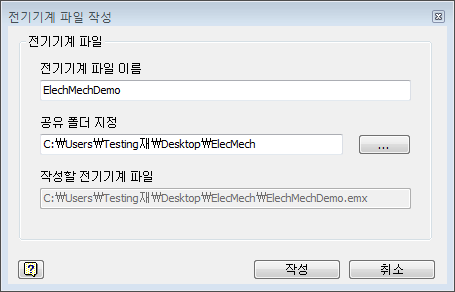 Inventor에서 시작하는 전기기계 프로젝트를 작성하려면