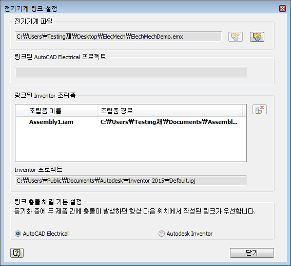 4. AutoCAD Electrical 도구 세트와 Inventor 간에 공유되는 폴더를 지정합니다.