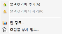 활성 범주의 즐겨찾기 리스트에 레코드를 추가합니다. 선택한 레코드가 즐겨찾기 리스트에 없을 때 하위 메뉴에서 보입니다.
