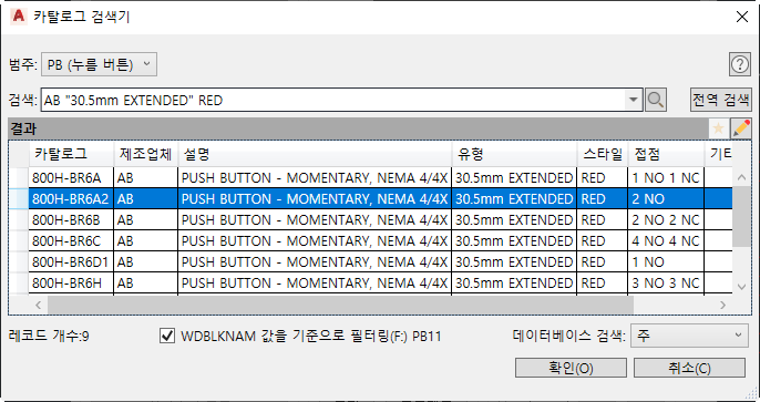전역 검색을 클릭하여 다른 패밀리 테이블에서 특정 카탈로그, 제조업체 또는 조립품 코드 값을 찾습니다. 예를 들어, 조명 누름 버튼 레코드는 PB(누름 버튼) 및 LT(라이트, 지시등) 테이블에서 공통될 수 있습니다. 이 기능을 사용하면 레코드가 이미 존재하는지 확인하여 중복 입력을 방지할 수 있습니다.
