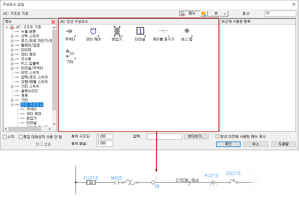 제어 릴레이 코일, 가로 횡선 삽입 |