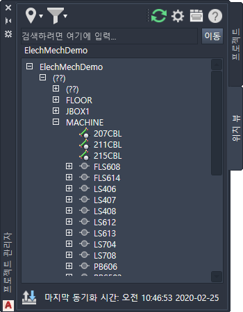 AutoCAD Electrical 도구 세트 데이터를 기준으로 구성요소 트리 및 상세 정보 및 연결 창을 갱신합니다.