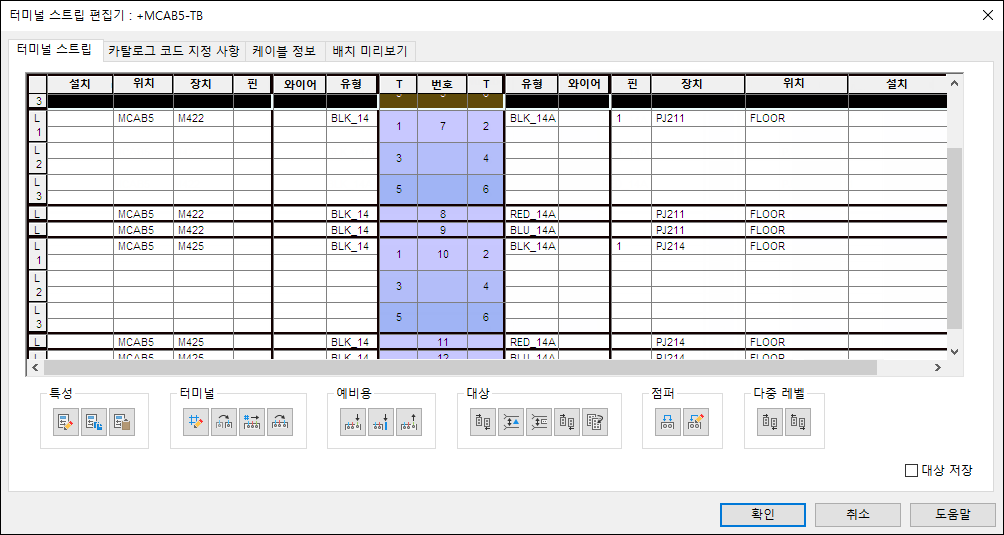 터미널 스트립 편집기를 사용하여 터미널을 관리하고, 터미널 특성을 편집하고, 터미널을 연관시키고, 그래픽 터미널 스트립을 삽입합니다.