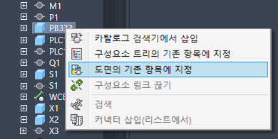 활성 도면에서 Inventor 부품과 링크할 Electrical 구성요소를 선택합니다. 링크된 구성요소를 표시하도록 구성요소 트리 뷰가 갱신됩니다.