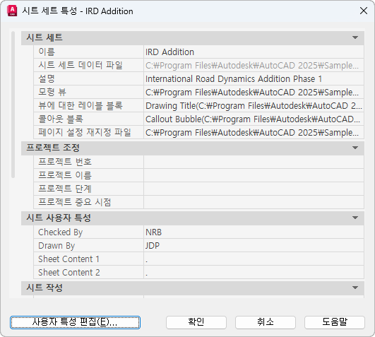 시트 세트에서 사용되는 도면이 들어 있는 폴더의 경로 및 이름을 표시합니다.