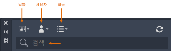 주: 검색은 자체적으로 사용하거나 달력, 사용자 및 이벤트 필터와 함께 사용할 수 있습니다.