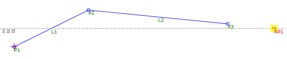 AP1는 지표면에서 P2로부터의 경사에 그려지는 보조 점입니다. P3과 L2는 P2와 AP1 사이의 보간 거리에 그려집니다.