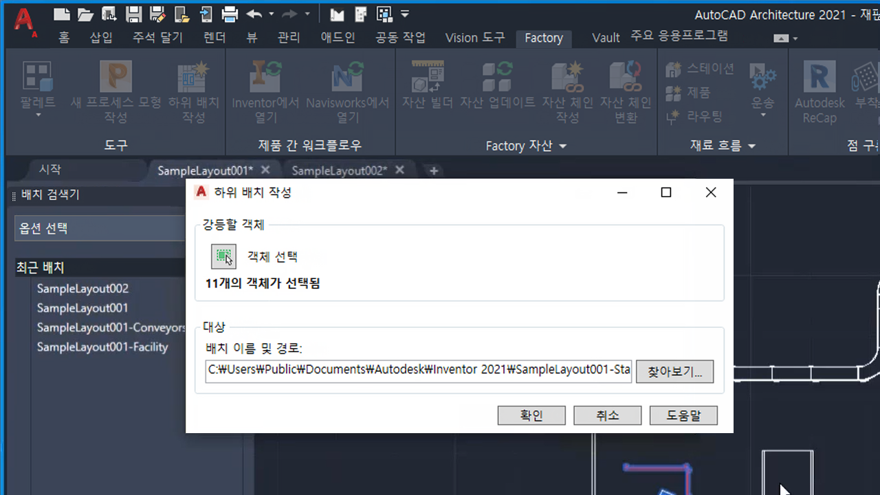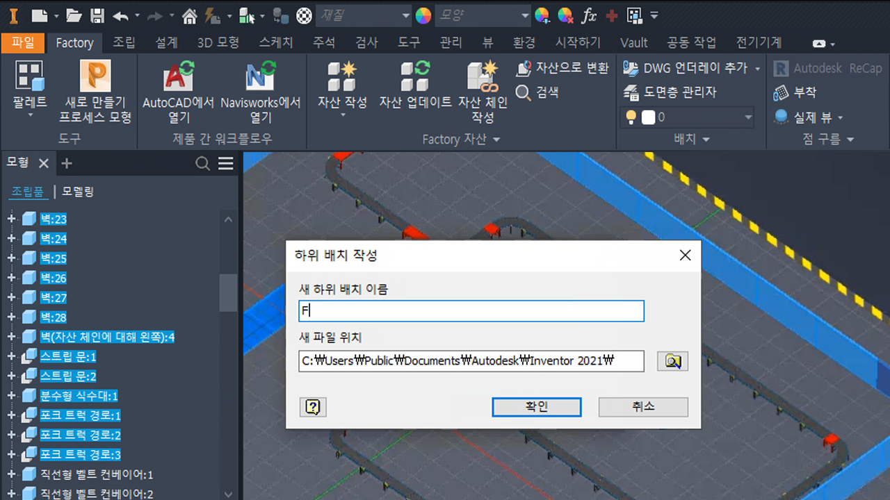 content="Revit AnyCAD 참조를 포함하는 Factory 배치는 일반 Inventor 조립품과 같은 방식으로 Factory Vault 통합을 통해 Vault에서 관리할 수 있습니다."