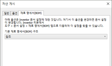 content="이제 자산을 게시하는 동안 BOM 설정에 액세스할 수 있습니다. 선택한 옵션은 Inventor 문서 설정을 반영합니다. 자산을 게시하는 동안 변경하면 문서 설정이 변경됩니다."