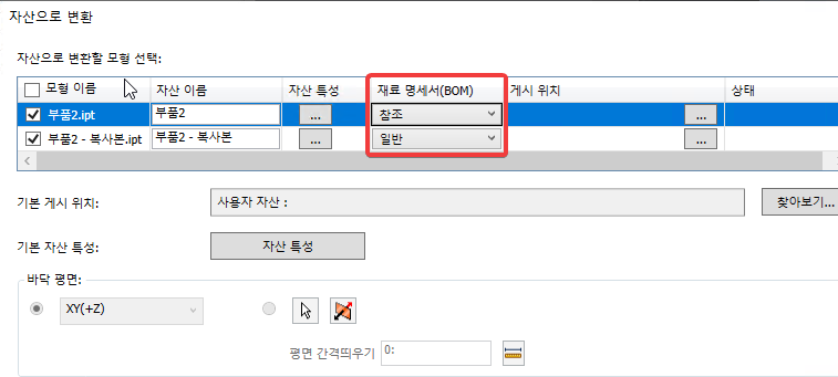 content=""자산으로 변환" 중 이제 BOM 설정을 제어할 수 있습니다. 선택한 옵션은 Inventor 문서 설정을 업데이트합니다."